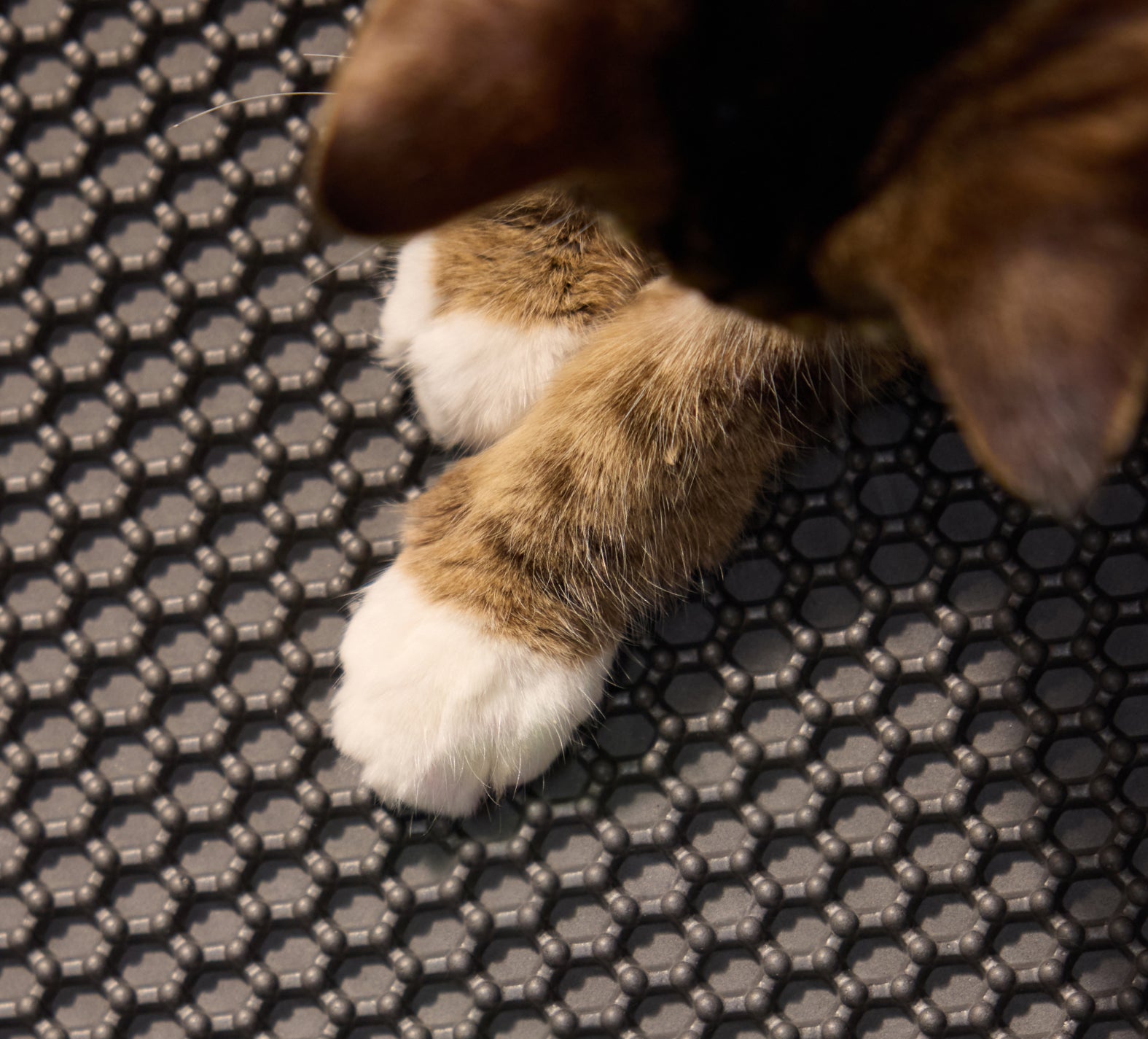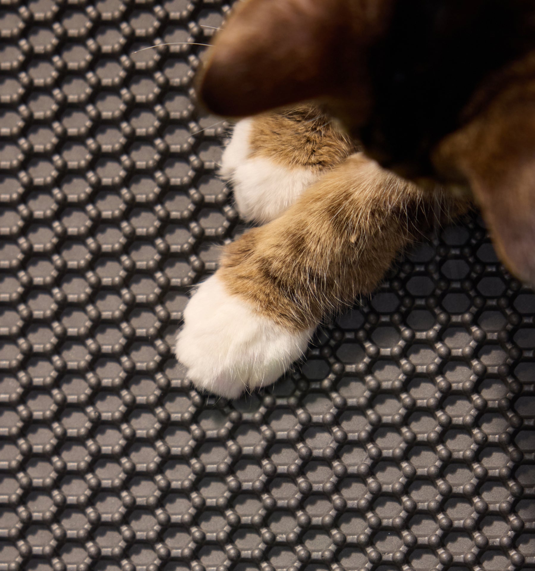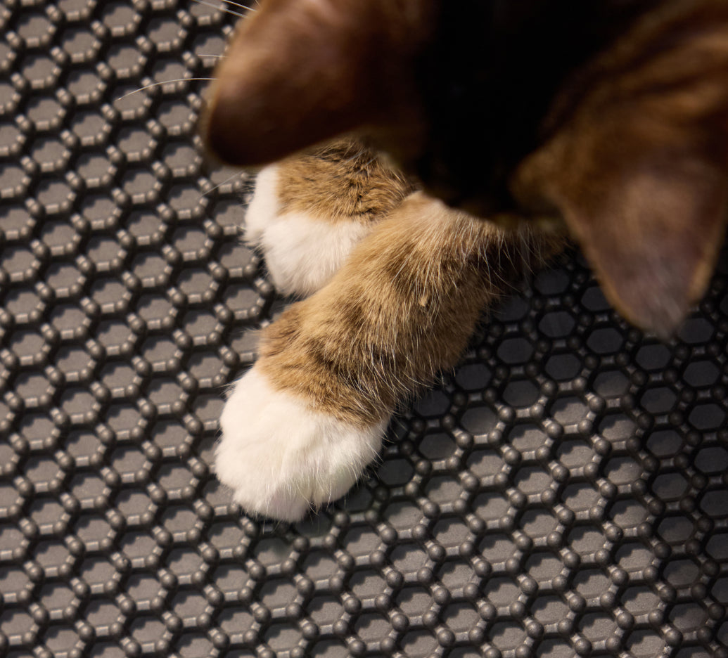 A: Cats often carry litter on their paws when using the box. A litter mat with a honeycomb design, a waterproof base, and an anti-slip bottom helps catch stray litter, keeping your home cleaner and making cleanup easier.