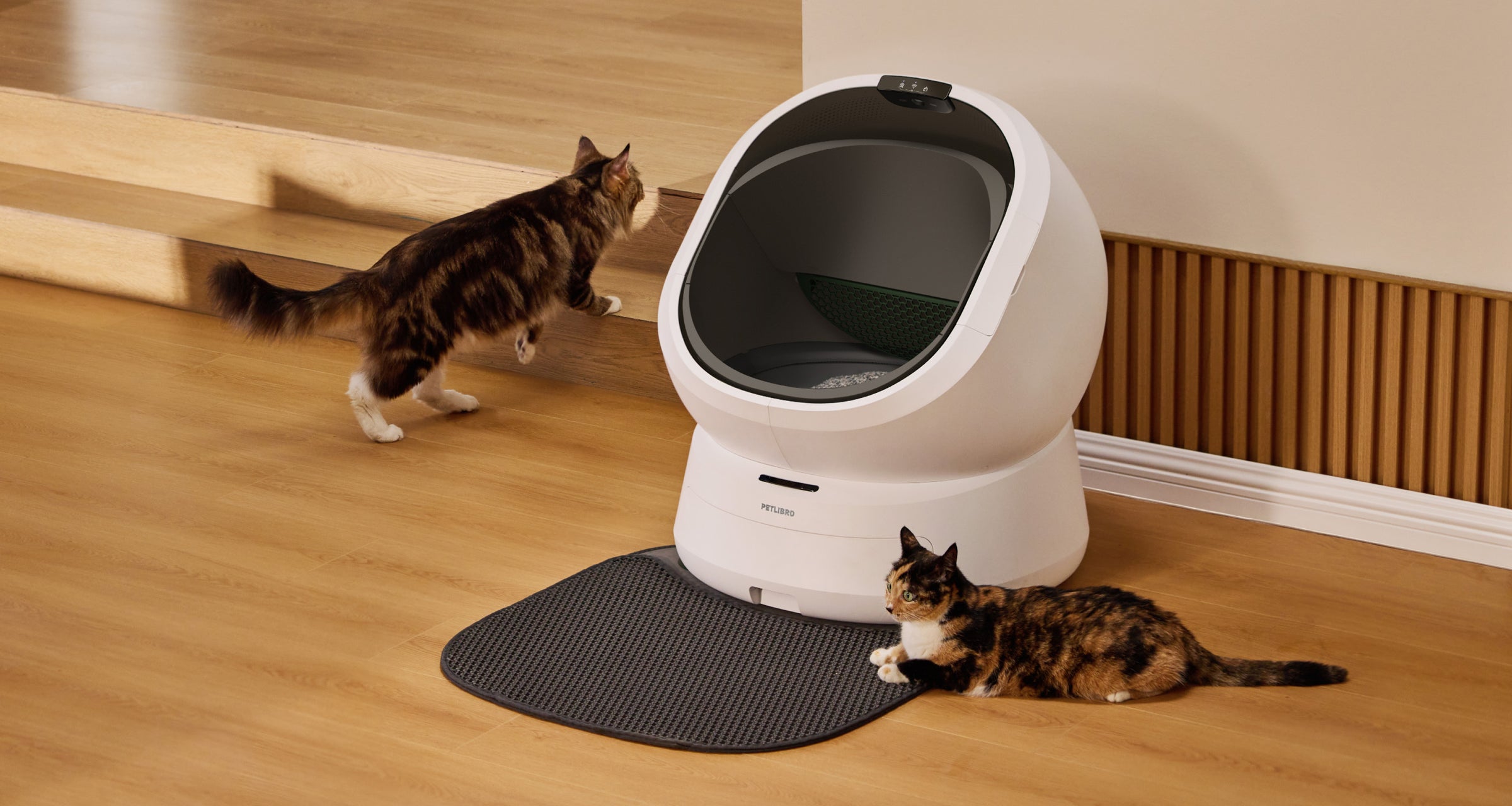 The mat traps stray litter as cats exit the Luma Smart Litter Box.